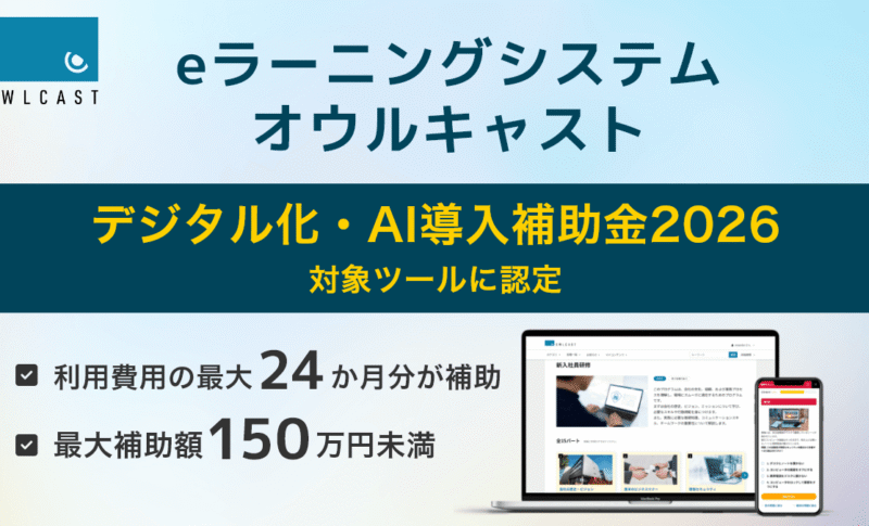 弊社が開発・販売しております「eラーニングシステム オウルキャスト」が、経済産業省が推進するサービス等生産性向上IT導入支援事業「デジタル化・AI導入補助金2026」において、補助対象となったことをお知らせいたします。